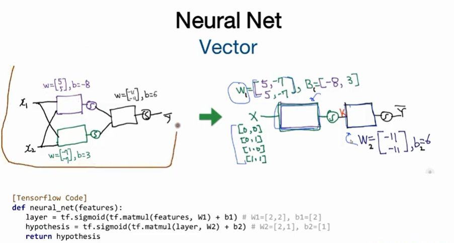 또한 x 데이터를 받는 두 개의 Logistic Regression은 아래와 같이 Vector 단위로 하나로 묶일 수 있다.
