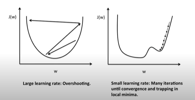 그런데 위와 같은 함수 형태를 띠면 Gradient 알고리즘을 적용할 때 시작점에 따라 결과가 다르게 나올 수 있다. (기울기가 0이 되는 부분이 여러 군데 존재하기 때문에 Global Minimum이 아닌 Local Minimum에 도달할 수 있다.)