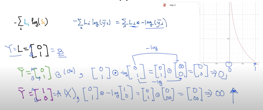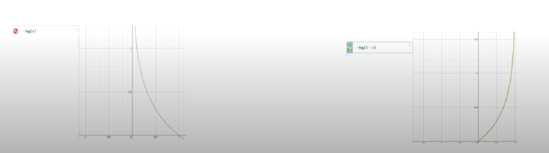 H(x) = 0 -> cost(0) = -log(1-0) = 0