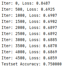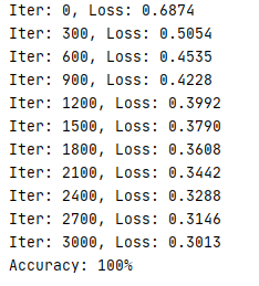 print("Iter: {}, Loss: {:.4f}".format(step, loss_fn(neural_net(features), labels)))