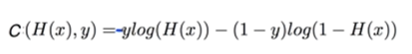 cost도 마찬가지로 두개의 경우를 하나로 합친 수식을 log 함수를 사용하여 구현한다.