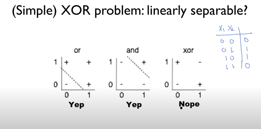 초기의 인공지능은 XOR 문제를 풀 방법이 없어서 불가능하다고 생각되었다.